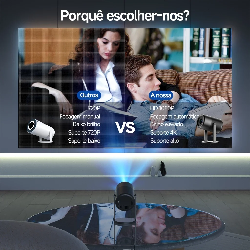 Dispositivos Adicionais Dispositivos Adicionais Você pode fazer download de vários aplicativos, brincar, partilhar fotos/vídeos/documentos, assistir a filmes e usar o telefone, o que aprimorará sua experiência de visualização: Resolução nativa 1280*720p decodificável em resolução 4K. A resolução nativa de 1280*720p, com alto brilho de 250ANSI, projeto imagens mais claras, brilhos e ricas, produtos excelentes feitos de projeto mesmo em ambientes óbvios. Manipula com eficiência os detalhes e mantém a qualidade da imagem original, sendo adequado para uso doméstico, documentos de escritório e tratamento empresarial.