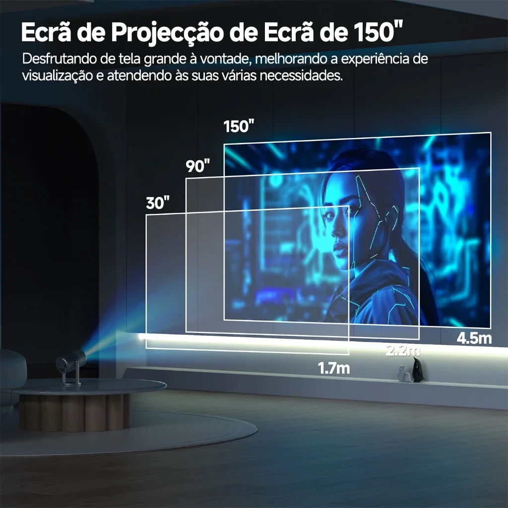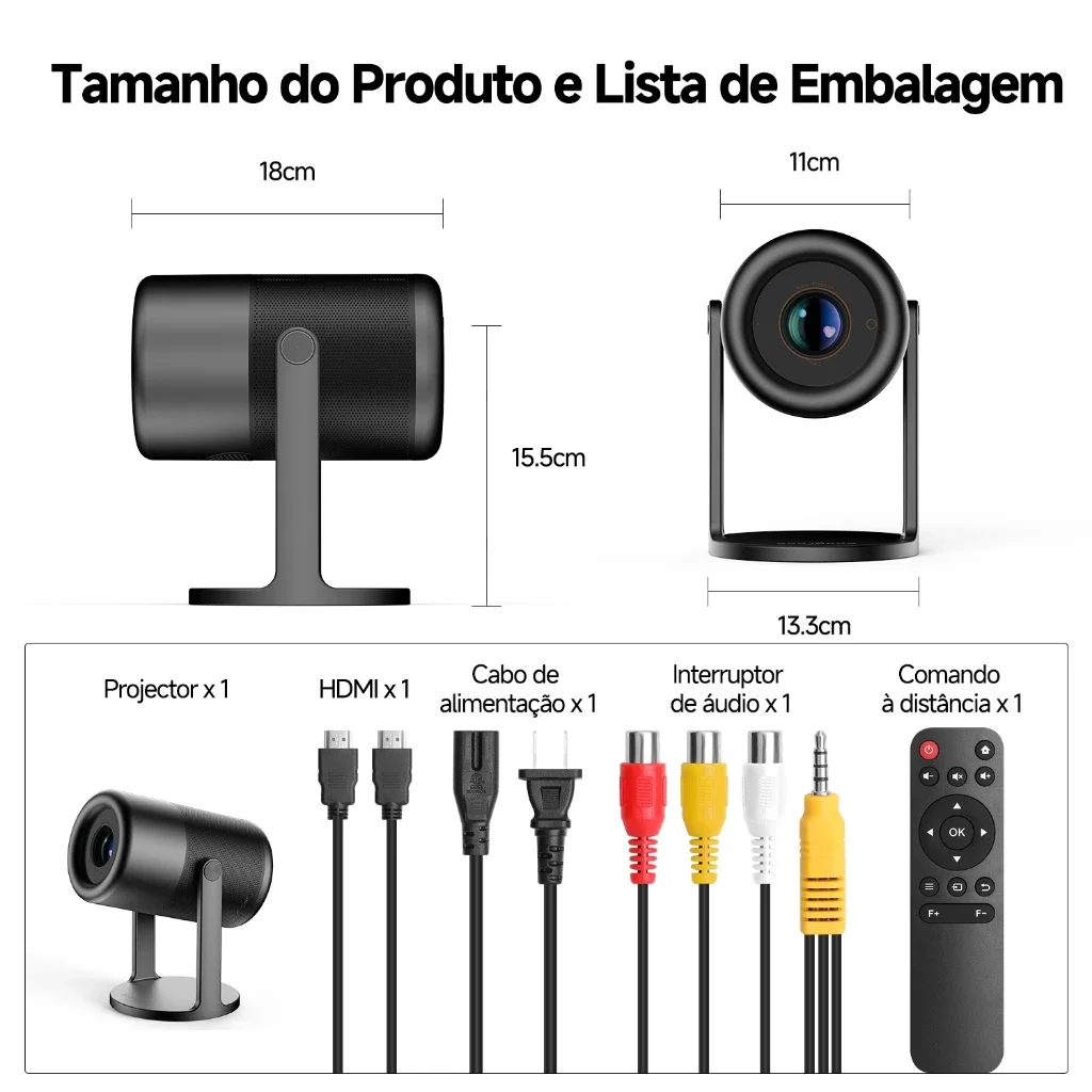 Suporte alto e ângulo livre de 360 °: Esse projeto inteligente tudo-em-um apresenta um design de suporte alto com direção de projeção giratória de 360 °, permiindo que você projeto livre nas paredes e no teto da sua casa de qualquer ângulo.